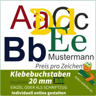 Folienbuchstaben / Einzelne Klebebuchstaben 20 mm aus Hochleistungsfolie geschnitten