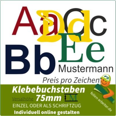 Höhe der Großbuchstaben 75 mm Preis je Buchstabe