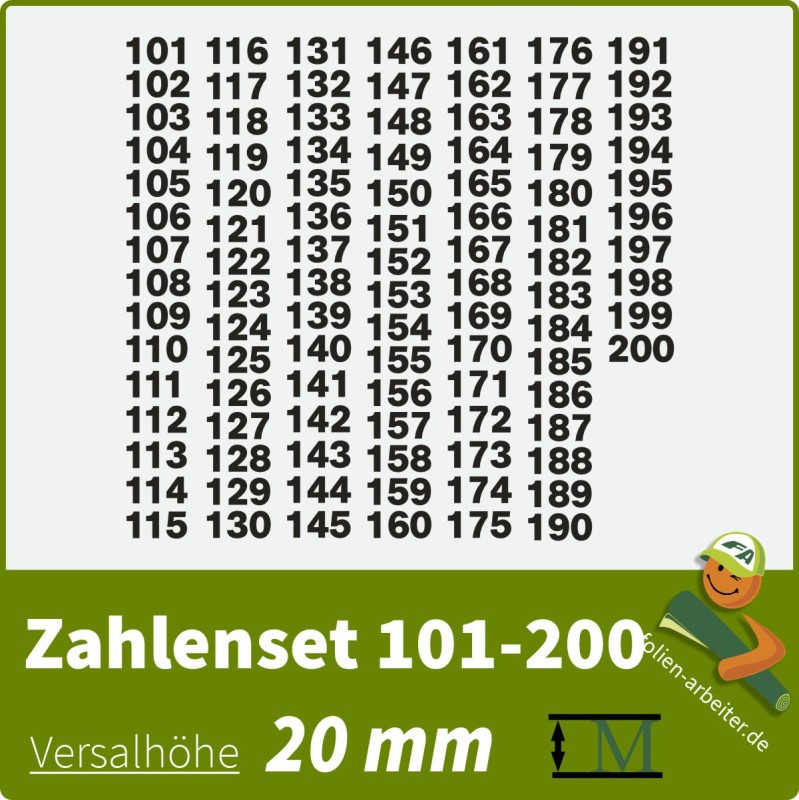 Klebezahlen-Set -101-200-20mm