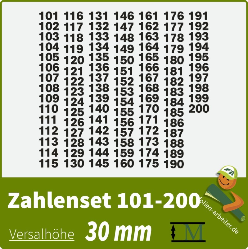 Klebezahlen-Set -101-200-30mm